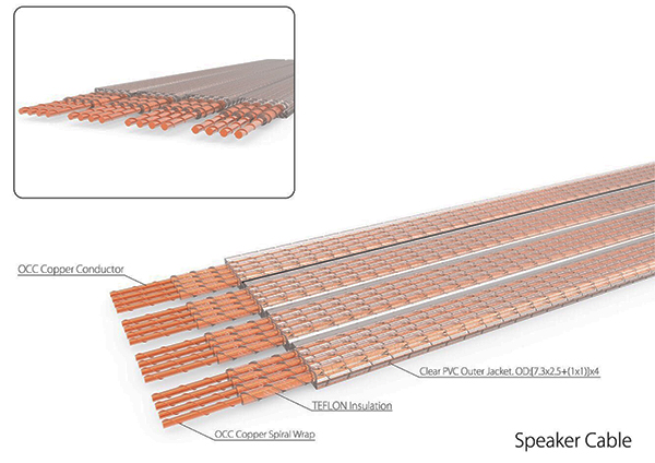 Like all Harmonic Technology products, the Pro-11 Reference speaker cable uses their OCC Single Crystal™ copper conductors. To make the 11 gauge conductor configuration of the Pro-11 Reference, eight subgroups of 20 to 24 gauge wire are covered with high quality polyethylene, polypropylene, and PVC insulation, wrapped with a Teflon® tape.